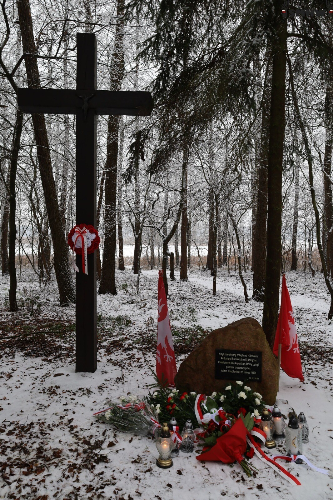 Po Mszy św. złożenie kwiatów przez delegacje na mogiłach powstańczych na cmentarzu oraz przy Krzyżu nad jeziorem chobienickim.