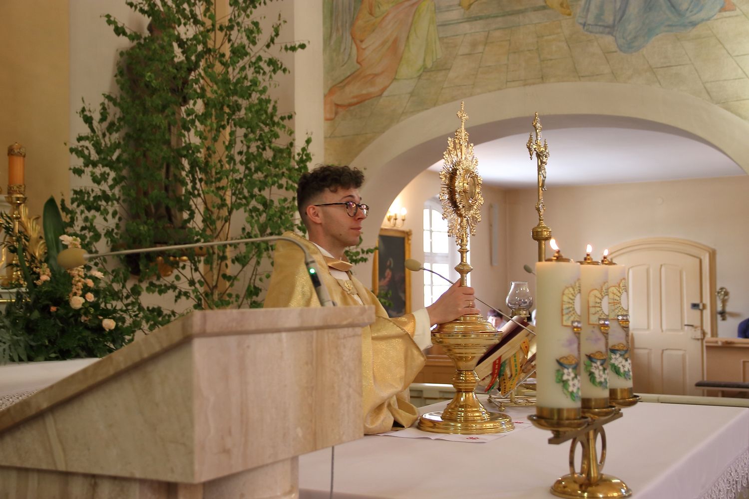 Msza św. z błogosławieństwem prymicyjnym ks. Neoprezbitera Krzysztofa Karwatki z sąsiedniej parafii w Siedlcu.