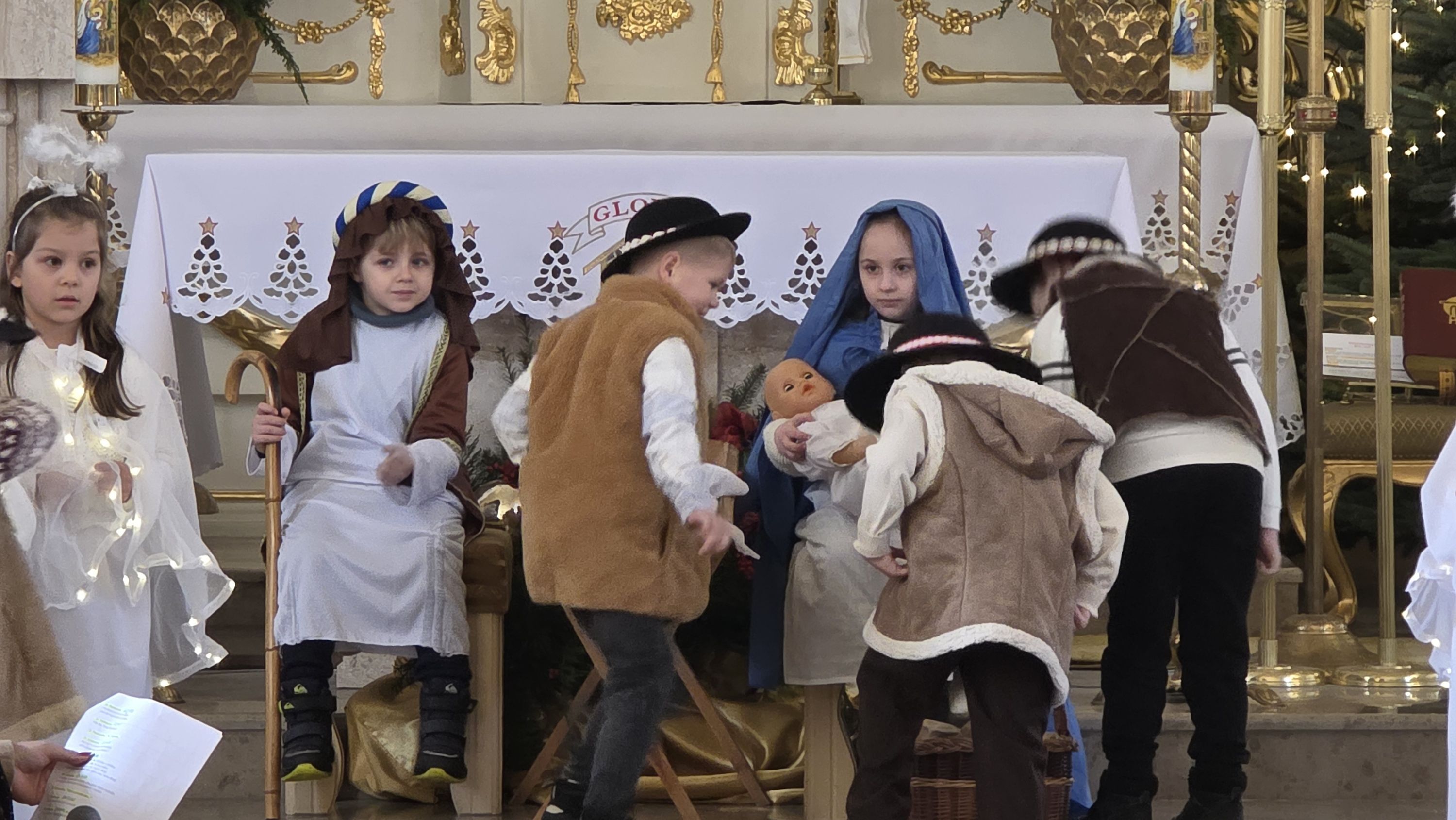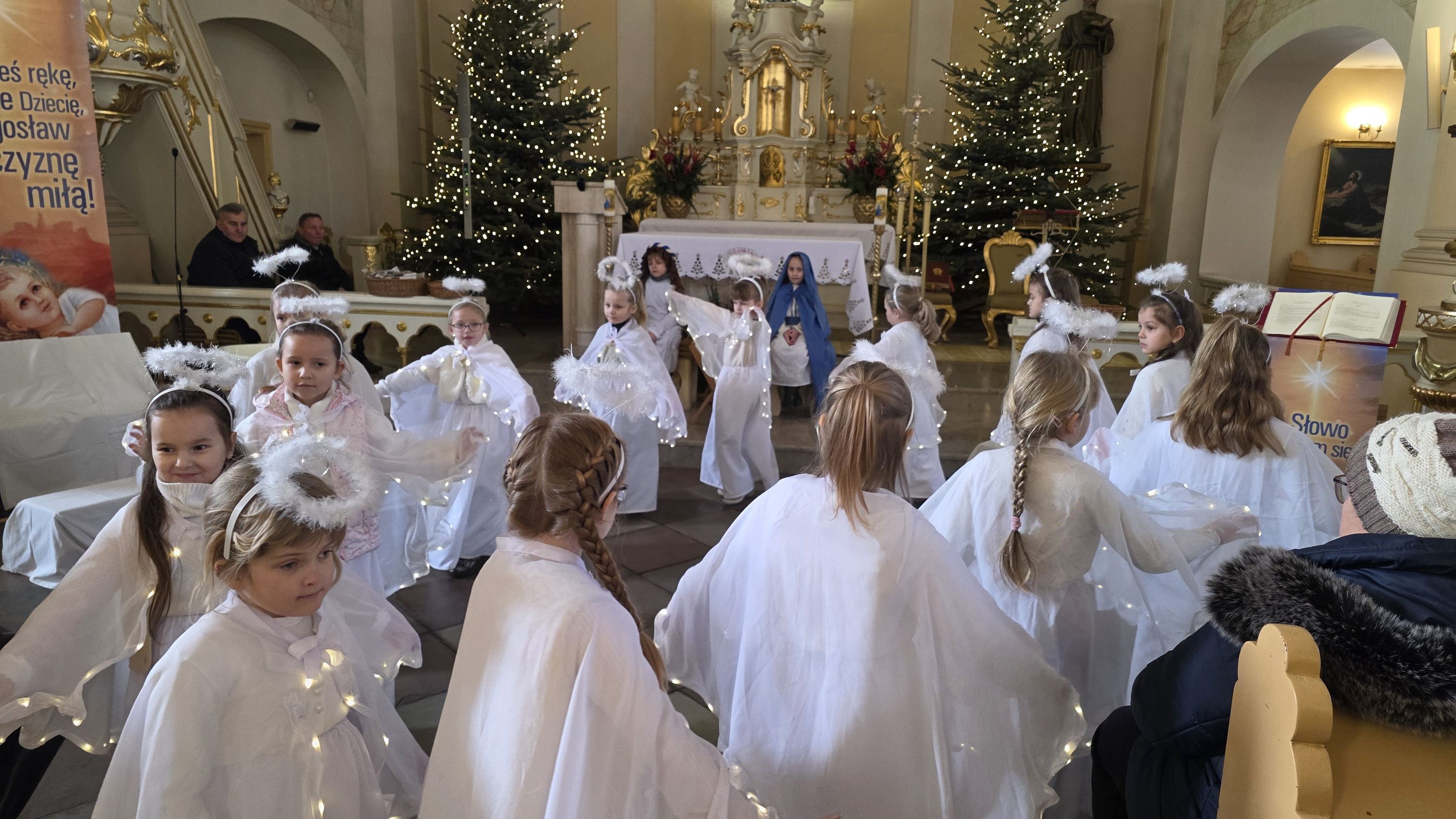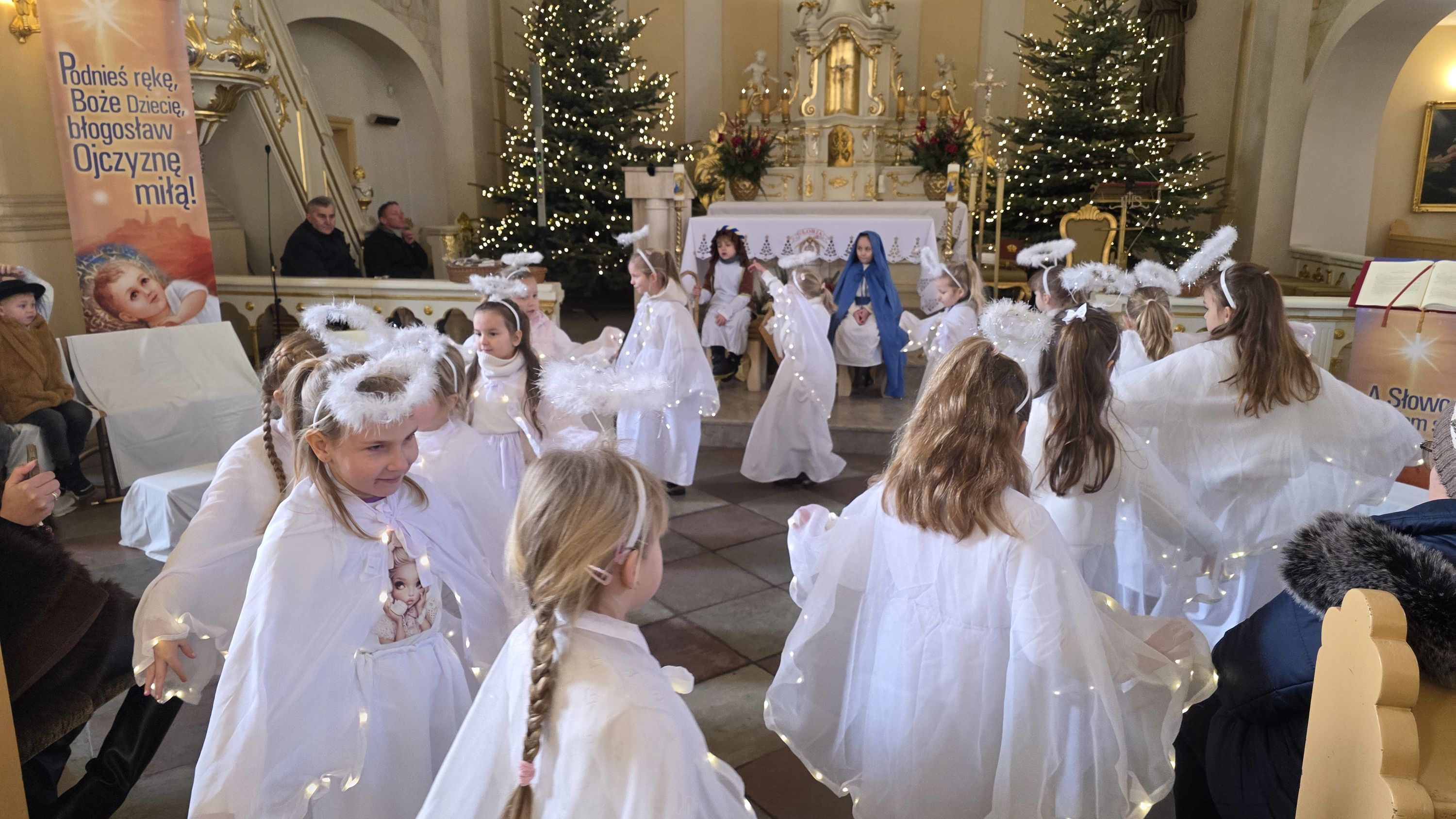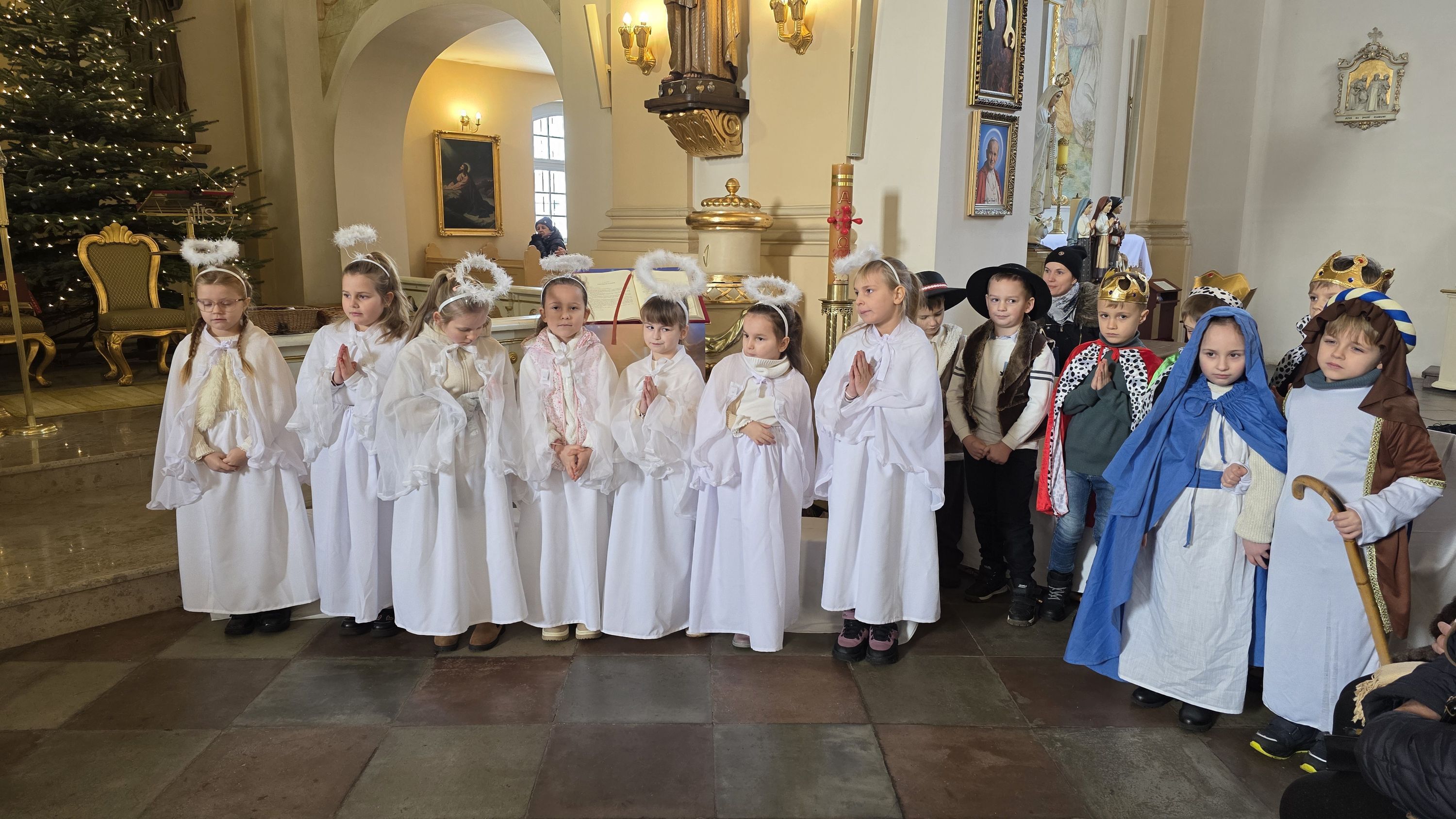 Dzieci, poprowadzone przez wychowawczynię - panią Anię Łuczak oraz katechetkę - panią Jolantę Modrzyk (Rzepa) wprowadziły dziś do naszej świątyni iście niebiański klimat. Zachęcamy do obejrzenia fotorelacji z tego wydarzenia, a wszystkim uczestnikom; zarówno Młodym Aktorom, ich zaangażowanym Rodzicom, a przede wszystkim tak licznie przybyłym widzom oraz Księdzu Proboszczowi składamy najserdeczniejsze podziękowania za ogrom wiary, jaką nas dziś obdarzyli.