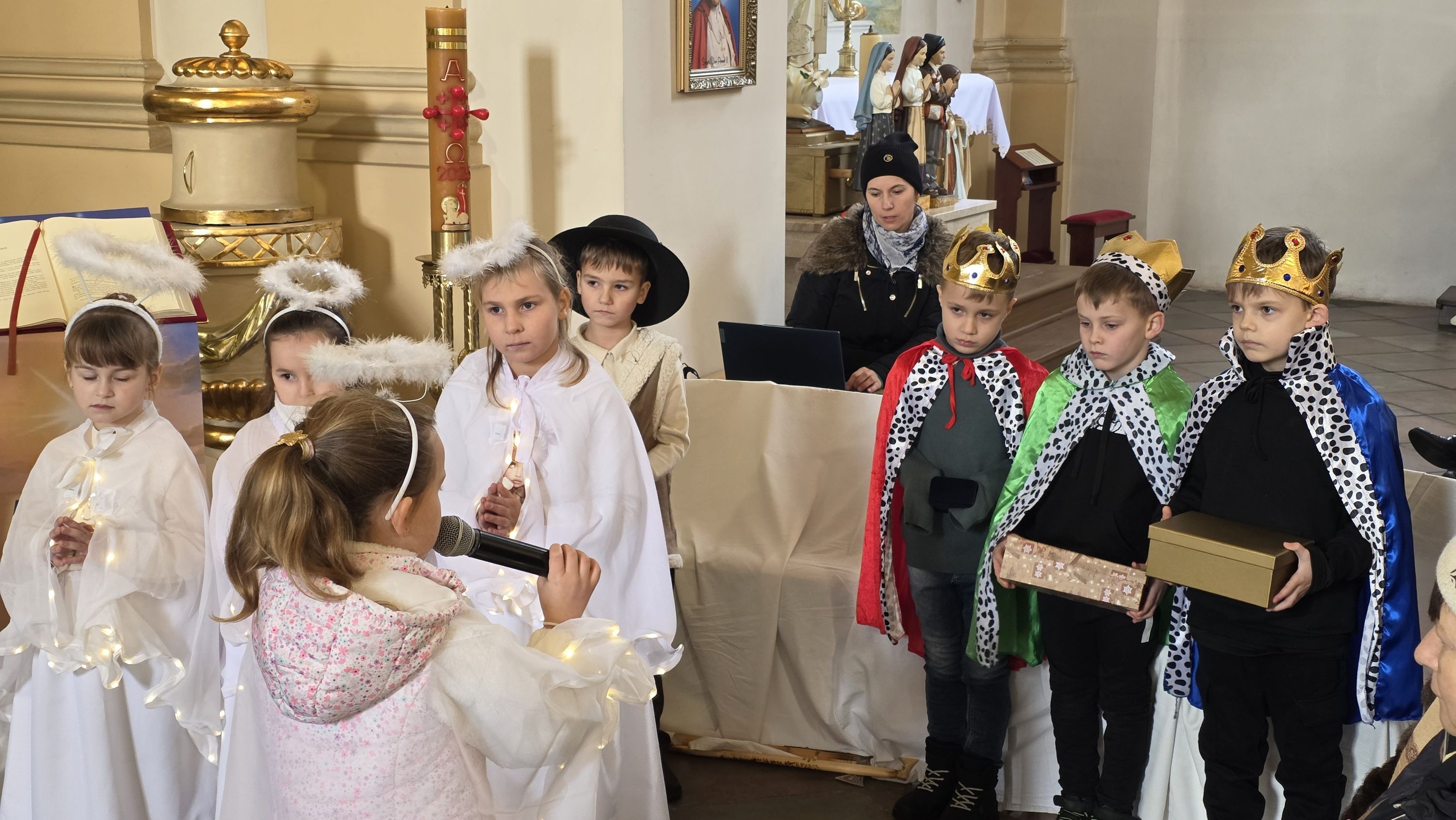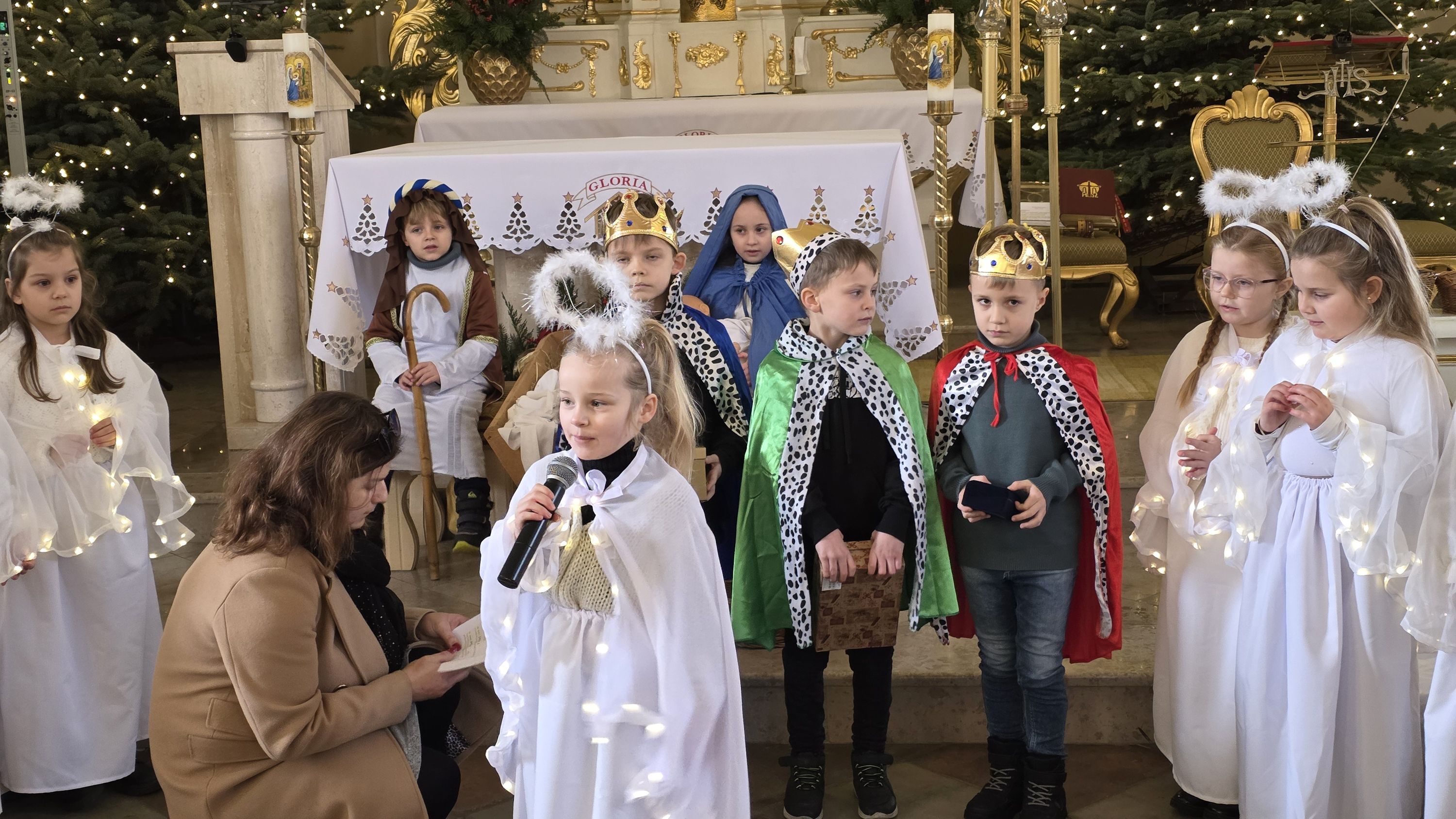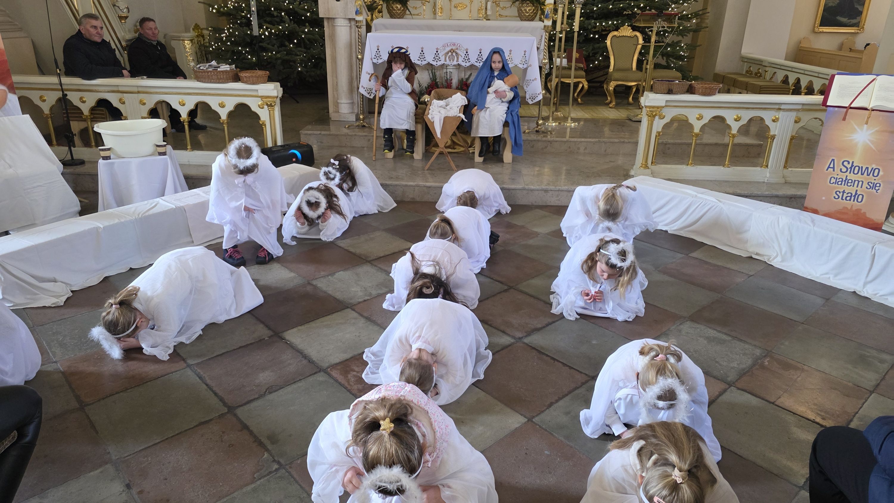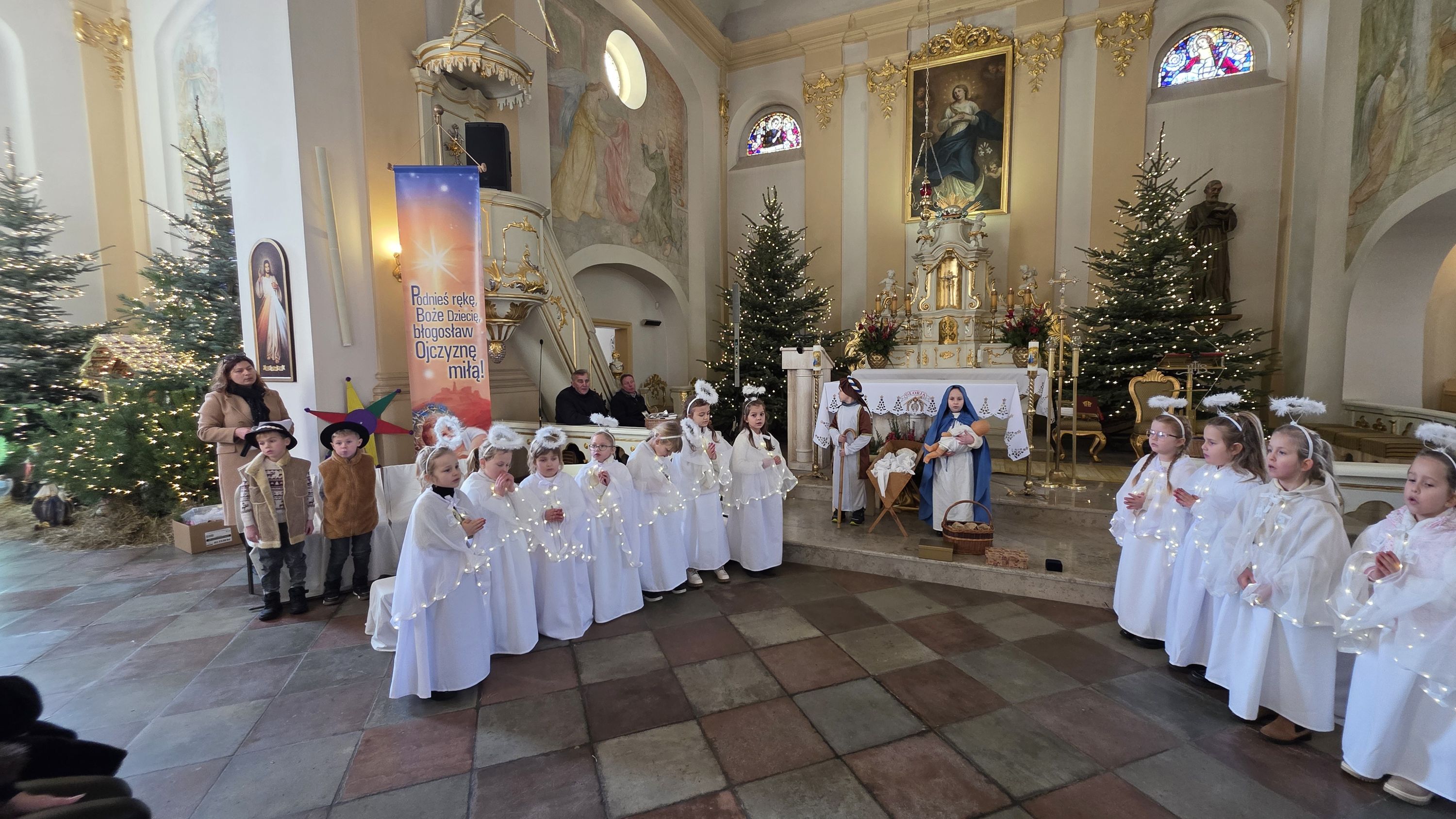 Dzieci, poprowadzone przez wychowawczynię - panią Anię Łuczak oraz katechetkę - panią Jolantę Modrzyk (Rzepa) wprowadziły dziś do naszej świątyni iście niebiański klimat. Zachęcamy do obejrzenia fotorelacji z tego wydarzenia, a wszystkim uczestnikom; zarówno Młodym Aktorom, ich zaangażowanym Rodzicom, a przede wszystkim tak licznie przybyłym widzom oraz Księdzu Proboszczowi składamy najserdeczniejsze podziękowania za ogrom wiary, jaką nas dziś obdarzyli.