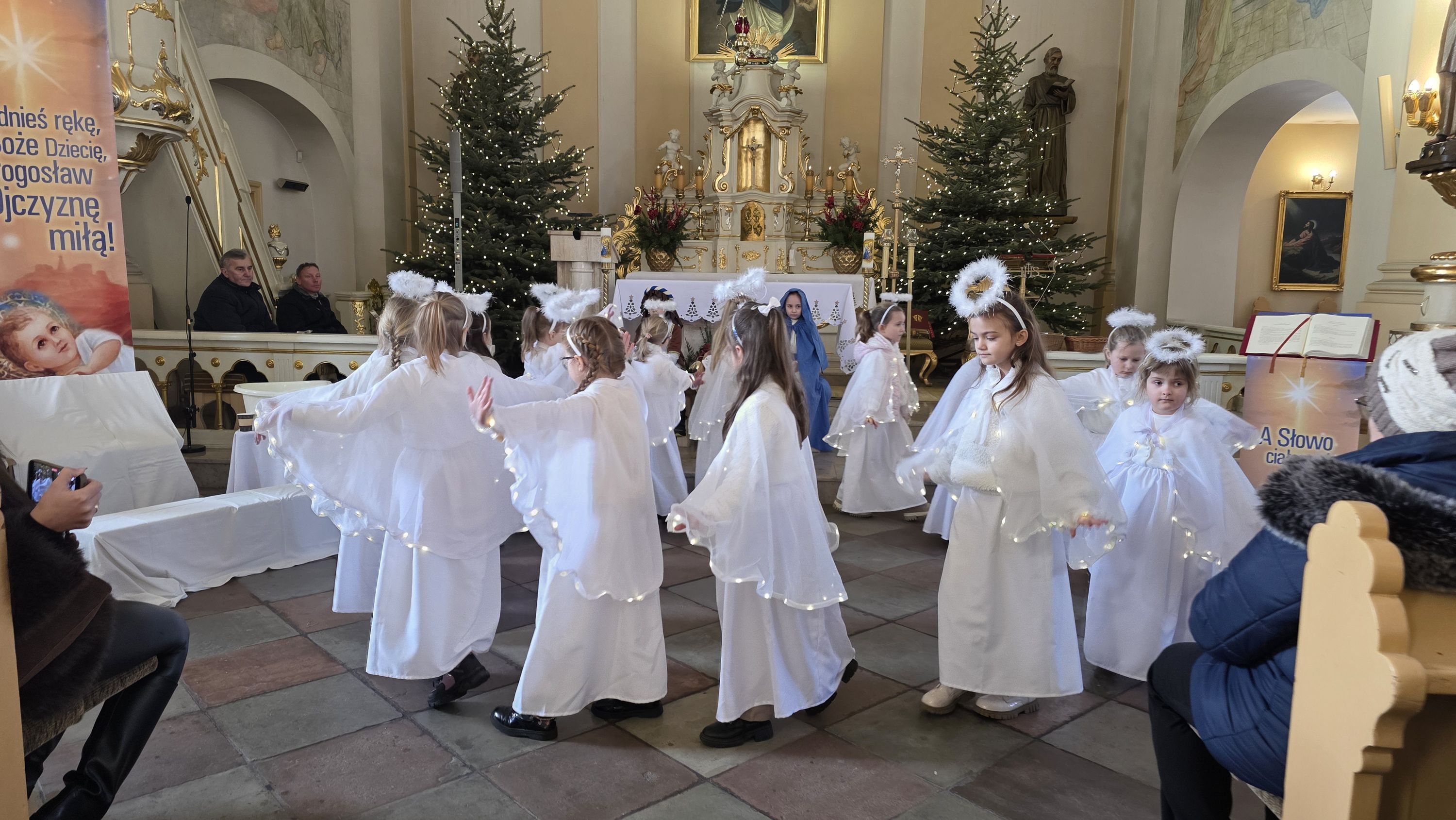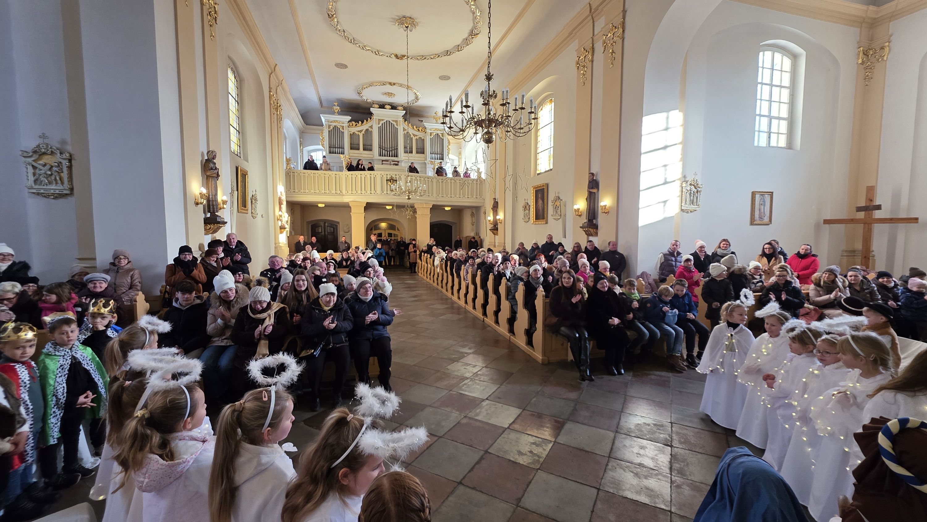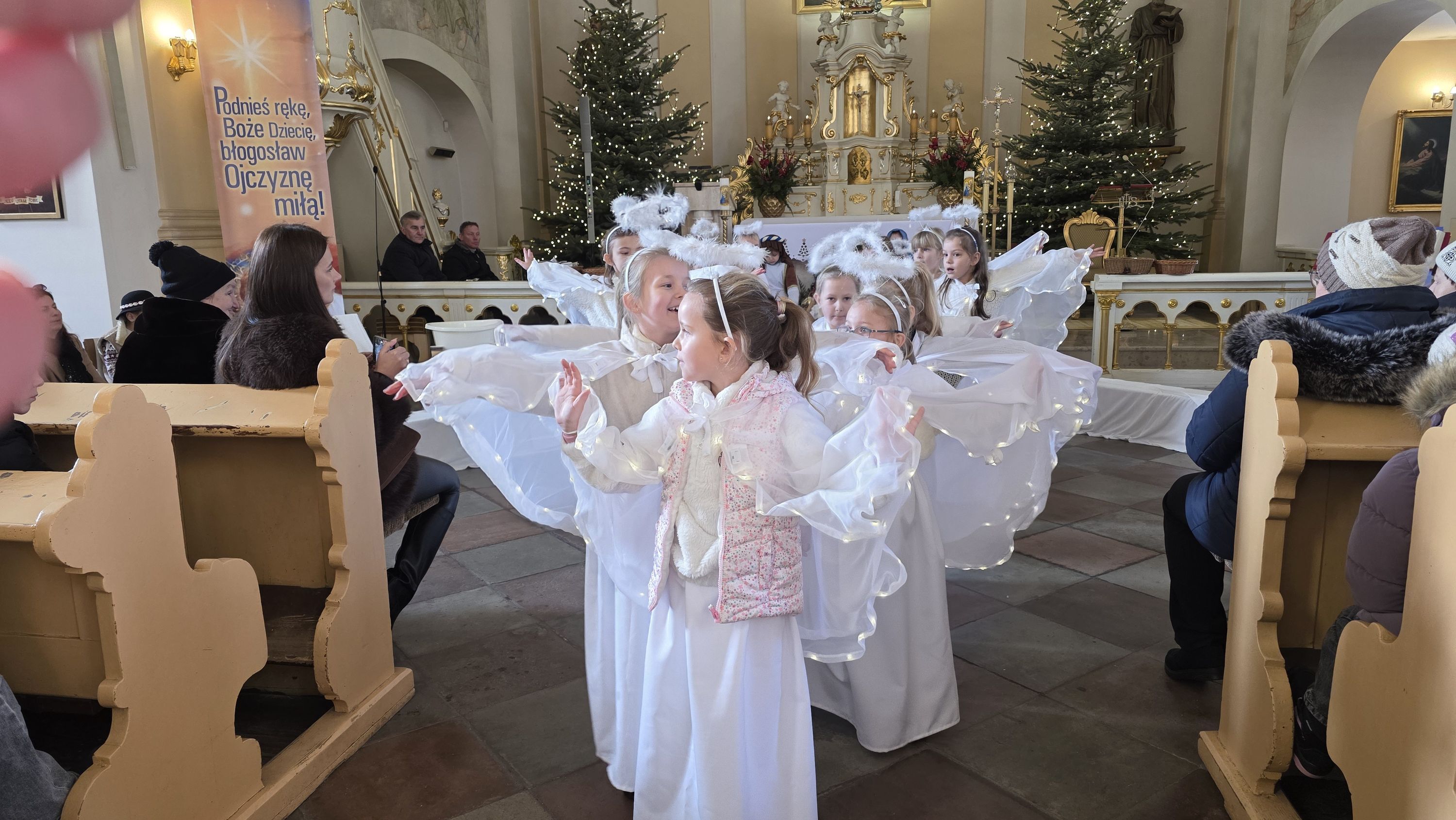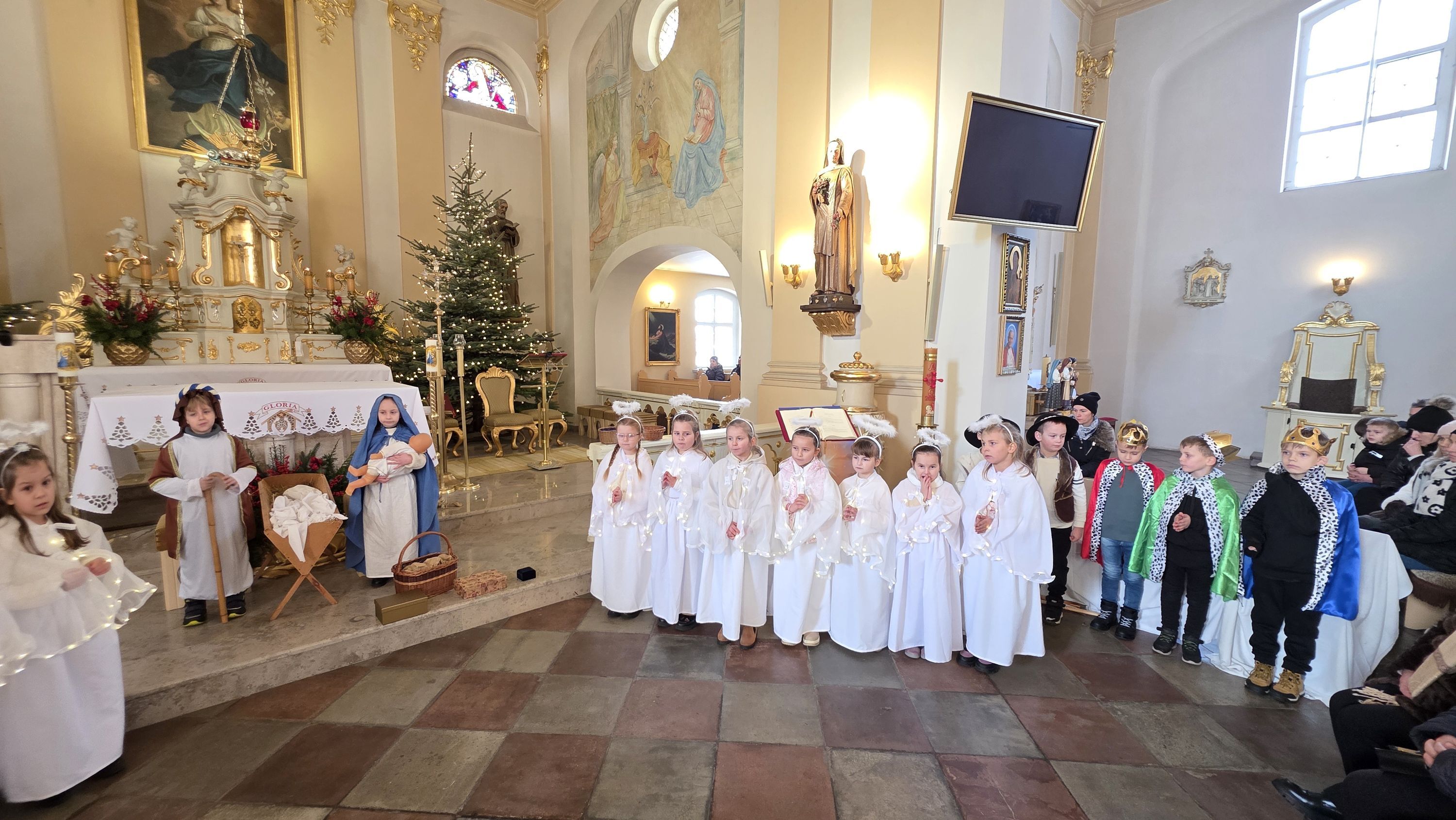Dzieci, poprowadzone przez wychowawczynię - panią Anię Łuczak oraz katechetkę - panią Jolantę Modrzyk (Rzepa) wprowadziły dziś do naszej świątyni iście niebiański klimat. Zachęcamy do obejrzenia fotorelacji z tego wydarzenia, a wszystkim uczestnikom; zarówno Młodym Aktorom, ich zaangażowanym Rodzicom, a przede wszystkim tak licznie przybyłym widzom oraz Księdzu Proboszczowi składamy najserdeczniejsze podziękowania za ogrom wiary, jaką nas dziś obdarzyli.