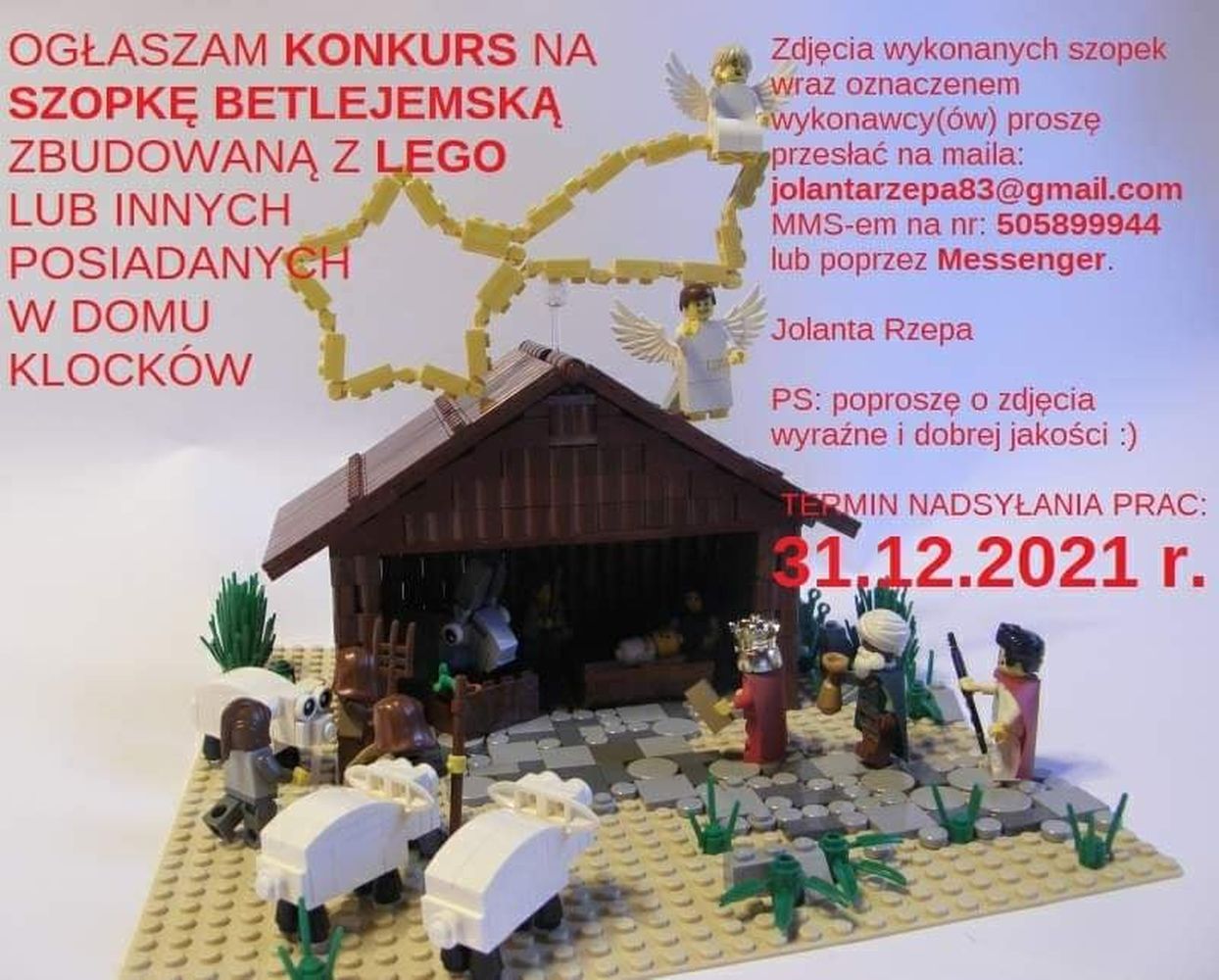 W dniu 10 stycznia 2022 roku nastąpiło podsumowanie konkursu na szopkę betlejemską zbudowaną z LEGO lub innych posiadanych w domu klocków. W konkursie uwzględniono również rysunek oraz pracę uczennicy z VI klasy. Do dnia 31 grudnia ub.r. łącznie nadesłano 13 fotografii: